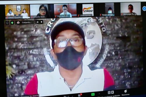 En la videoconferencia efectuada vía la plataforma de ZOOM, en representación del secretario general de la CROC en el Estado, Martín de la Cruz Gómez estuvo presente la coordinadora del Jurídico de la CROC, Lic. Leslie Berenice Baeza Soto; el coordinador del programa Prevención de las Adicciones en la CROC Playa del Carmen, Pablo Villafranco Alvarado.