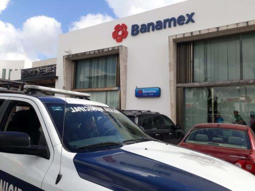 Cancún, Q. Roo, 30 de agosto 2018.- Luego de los recientes asaltos a cuentahabientes de instituciones bancarias de esta ciudad, la Secretaría Municipal de Seguridad Pública anunció que la Policía Auxiliar reforzó las labores de vigilancia en sucursales bancarias.