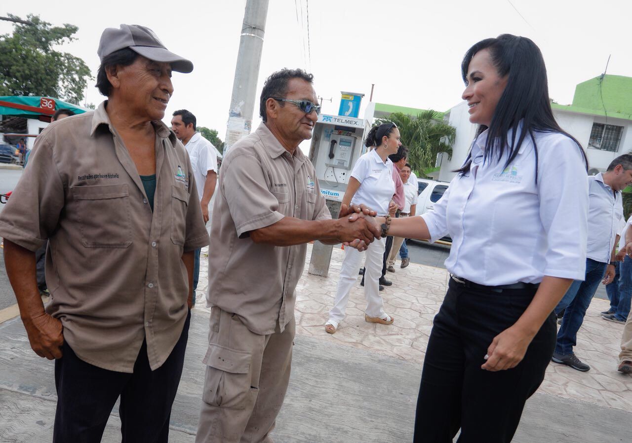 Durante la entrega de equipamiento, en presencia del secretario de Obras y Servicios Públicos, Ignacio Sánchez Cordero, y el delegado municipal, Leouvín Moysés Medina Cahuich, la primera edil felicitó a los trabajadores que conforman la brigada de Servicios Públicos, quienes cumplen un rol muy importante y de mucho beneficio para la sociedad.