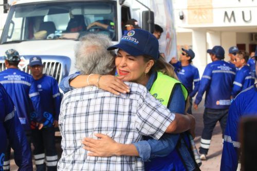 Agregó que, “al inicio de la administración, la presidenta entregó camiones nuevos para mantener el municipio limpio. Ahora, con la entrega de estos 10 camiones se vienen a reforzar las rutas en Villas del Sol, Guadalupana, Colosio, Ejido Marsella, entre otras”.