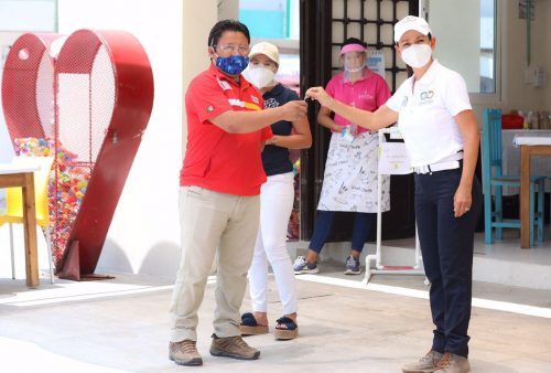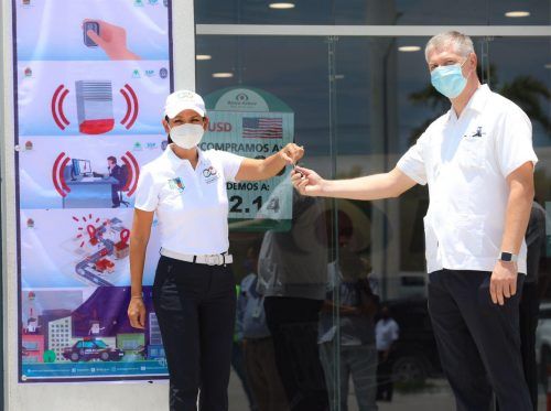 Puerto Morelos, Quintana Roo, 20 de agosto de 2020.- La alcaldesa Laura Fernández Piña entregó a vecinos, dueños de pequeños negocios y representantes de grandes empresas controles de las alarmas con tecnología de punta, instaladas en puntos estratégicos de la cabecera municipal y la delegación de Leona Vicario.