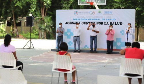 Puerto Morelos, Quintana Roo, 15 de septiembre de 2020.- El gobierno de la presidenta municipal Laura Fernández Piña puso en marcha esta mañana, en el domo deportivo de la colonia Joaquín Zetina Gasca, las jornadas “Juntos por la Salud” que brindarán atención médica gratuita a los habitantes de Puerto Morelos.