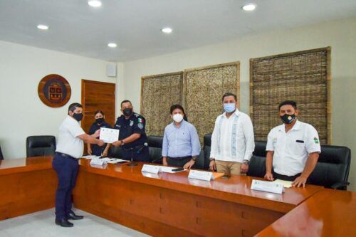 Durante la toma de protesta encabezada por el presidente municipal, Víctor Mas Tah, estuvieron presentes el director general de Seguridad Pública y Tránsito, Nesguer Vicencio Méndez, el secretario general del Ayuntamiento, Enrique Rodríguez Luna y del director general de Planeación Municipal, Bernardino Mis Teh.
