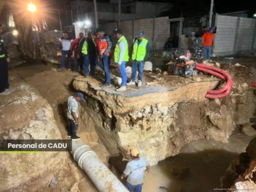 Playa del Carmen, Quintana Roo, 15 de abril de 2026.— La empresa Aguakan informó que concluyeron los trabajos de reparación en la línea de conducción de agua potable de 20 pulgadas, luego de que resultara afectada por labores realizadas por la desarrolladora CADU.