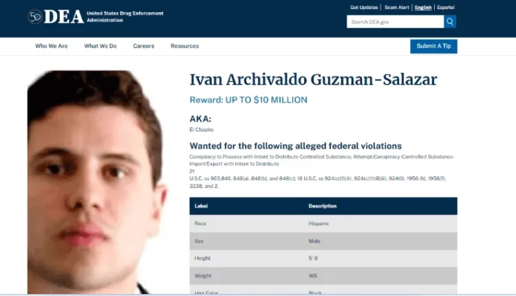 La DEA, dentro de la página oficial “Mostwantedfugitives” sigue teniendo como el “más buscado” a IvanArchivaldoGuzman-Salazar, mejor conocido como “El Chapito”, por quien ofrecen hasta 10 millones de dólares.