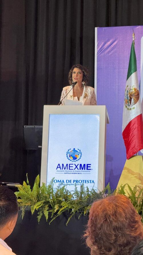 El acto fue presidido por la Mtra. Ivett Bonifaz Famania, presidenta nacional de AMEXME, y contó con la presencia del secretario de Desarrollo Económico de Quintana Roo, Paul Carrillo de Cáceres, en representación de la gobernadora Mara Lezama; así como la secretaria de Turismo de Playa del Carmen, Estefanía Hernández, en representación de la presidenta municipal Estefanía Mercado Asencio, además de líderes empresariales y autoridades.