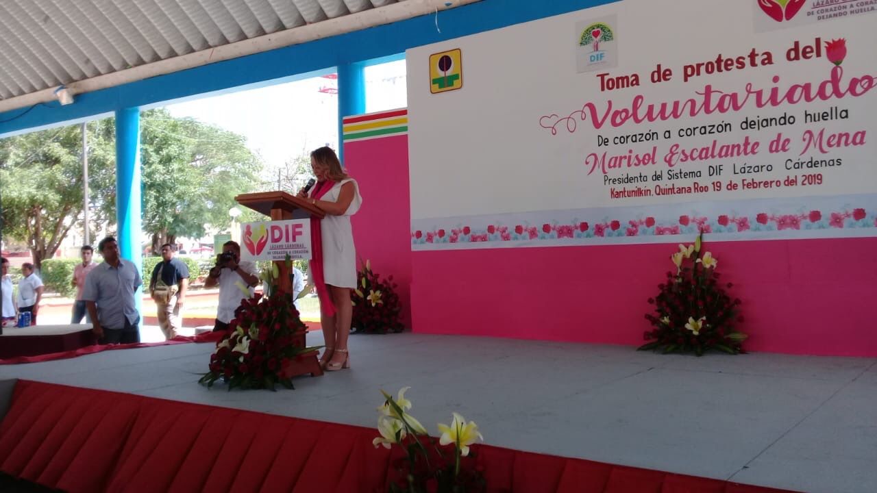 Kantunilkín, Q. Roo, 19 febrero 2019.- El voluntariado del DIF municipal rindió hoy aquí protesta en el domo del parque principal de esta cabecera municipal en presencia de autoridades locales y estatales del ramo.