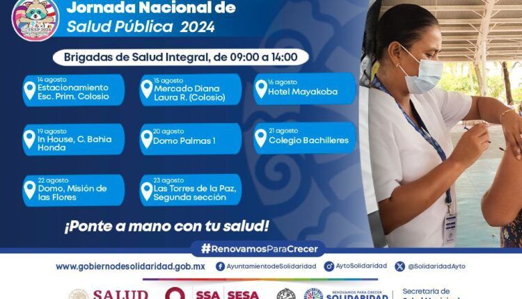 Playa del Carmen. – Con el objetivo de acercar servicios de salud a la población se estará realizando la Jornada Nacional de Salud Pública (JNSP) 2024, ¡Ponte a mano con tu salud! en diferentes ubicaciones de la geografía municipal, siendo el bienestar de las y los solidarenses una prioridad para la presidenta Lili Campos.