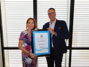 Finalmente, en el marco de la Asamblea General de Socios, Conrad Bergwerf entregó una constancia como nuevo socio honorario de la agrupación a la Presidente de Meeting Professionals International (MPI Caribe Mexicano), Valeria Serrano.