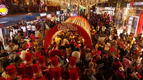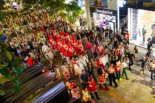 Las luces y los adornos navideños en las fachadas de los negocios, así como pasillos de pinos, caramelos, estrellas y esferas embellecieron el paseo desde la avenida Constituyentes hasta la Plaza 28 de Julio, donde otra multitud disfrutaba de la cartelera cultural y artística en el anfiteatro, con el en majestuoso árbol navideño como testigo.