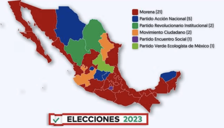 El mapa que arrojan las elecciones 2023 sitúa a Morena como el partido con mayoría en los gobiernos estatales, con 21 entidades. Al PRI, le pertenecen dos, mientras que el Partido Acción Nacional (PAN) mantiene cinco estados. Los Partidos Encuentro Social y Verde Ecologista de México tienen apenas uno.