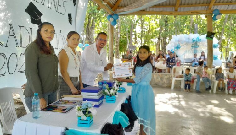 Playa del Carmen.- A 5 años de fundada la comunidad Los faisanes y a un año de haber sus puertas la nescuela del CONAFE donde los menores de edad de esta y otras comunidades como El Edén, Campesinos Unidos y hasta de Nuevo Noh Bec, este sábado se graduó la primera generación de estudiantes.