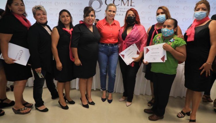 Playa del Carmen.- Más de 40 mujeres de distintas partes del Estado y de este municipio recibieron constancia de su graduación del Programa Fortalezza del Consejo Coordinador de Mujeres Empresarias (CCME), dónde la presidenta municipal de Solidaridad, Lili Campos Miranda reconoció su esfuerzo, reto, dedicación y tiempo. “Que orgullo me da verlas felices, empoderadas con esas herramientas que les brinda el conocimiento, para salir adelante, por su propio bien y de la familia, para defender y hacer que se respeten los derechos de las mujeres”.