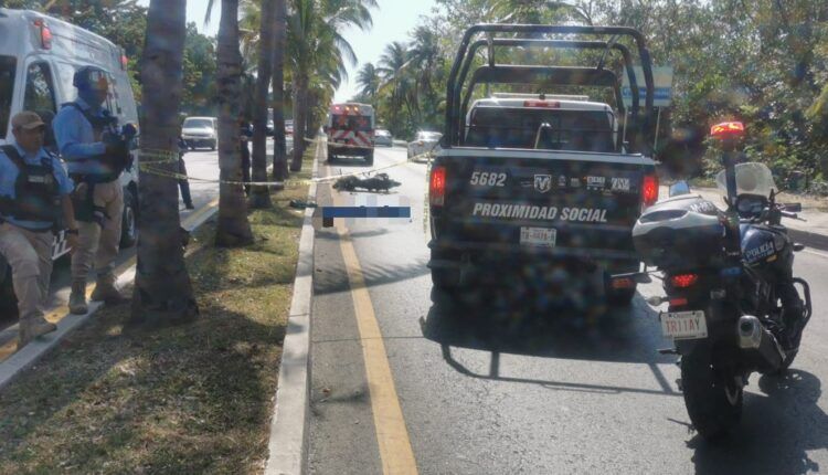 La víctima derrapó hacia su izquierda, ocasionado que chocara contra una palmera del camellón central, quedando su cuerpo tirado en el pavimento, a un costado de la moto.