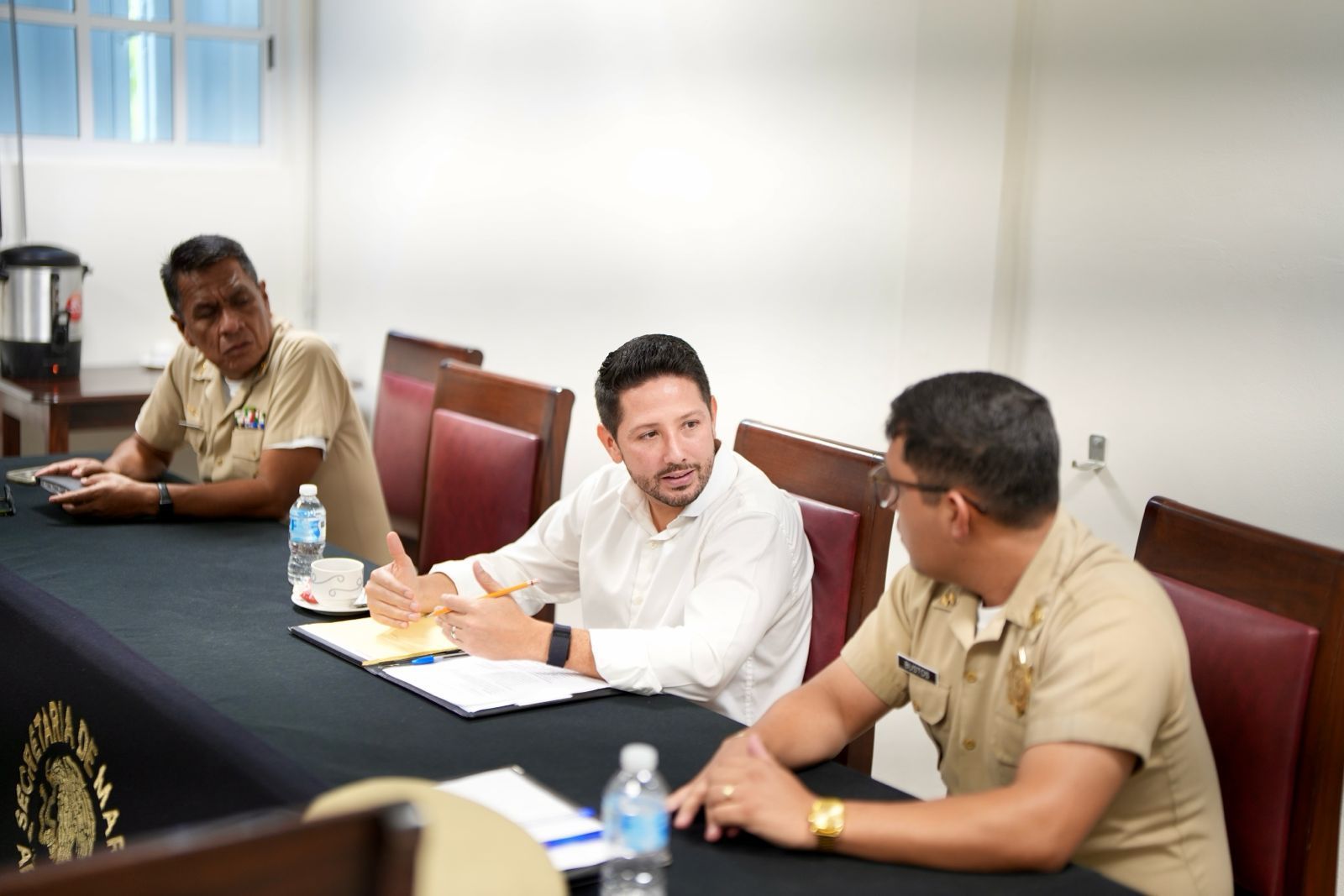 Chetumal.– El diputado y dirigente estatal del Partido Verde en Quintana Roo, Renán Sánchez Tajonar, sostuvo una reunión de trabajo con el Contraalmirante Manuel Baltazar y el Capitán Naval Napoleón Ibarra para avanzar en una causa urgente: la protección de la Laguna de Bacalar.