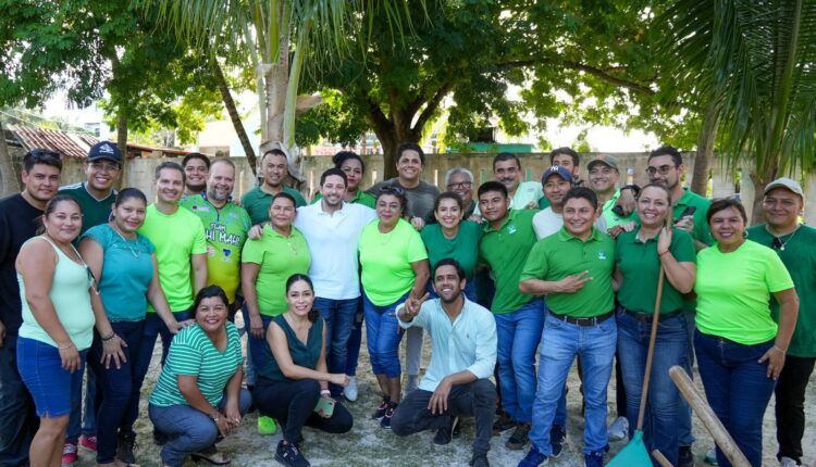 Puerto Morelos. – El líder del Partido Verde Ecologista de México en Quintana Roo, Renán Sánchez Tajonar, participó en una jornada de limpieza escolar, organizada por el PVEM de Puerto Morelos en la escuela primaria Adolfo López Mateos, con lo que, refrendan el compromiso de mejorar los espacios educativos.