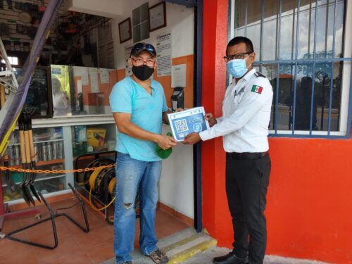 Isla Mujeres, Quintana Roo 1 de marzo de 2021. – Con la finalidad reforzar la seguridad en el municipio y mantener la cercanía con el sector empresarial, el gobierno de Isla Mujeres que encabeza Juan Carrillo Soberanis, a través la Dirección General de Seguridad Pública y Tránsito Municipal (DGSPyTM) a cargo de Eduardo Fouilloux Bataller, realizó la entrega de por lo menos, 30 códigos QR a mismo número de negocios en la Zona Continental.
