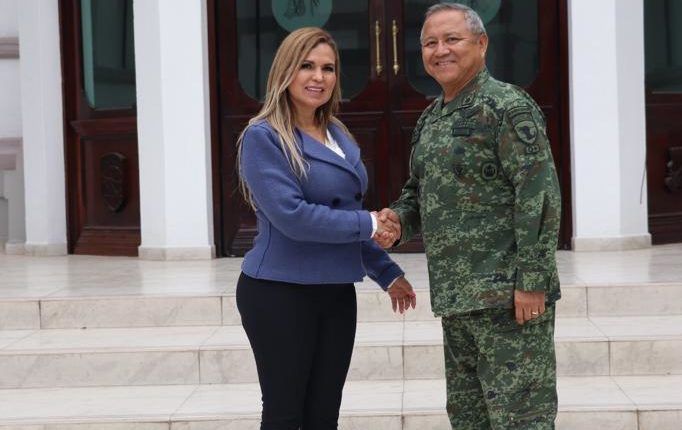 Playa del Carmen.- Con el objetivo de profesionalizar, renovar y fortalecer los conocimientos en diversos temas para beneficio de los elementos de la Secretaría de Seguridad Pública de Solidaridad, la presidenta Lili Campos sostuvo una reunión con el General Brigadier D.E.M. Andrés Fernando Aguirre O. Sunza, Director del Colegio de Defensa Nacional.