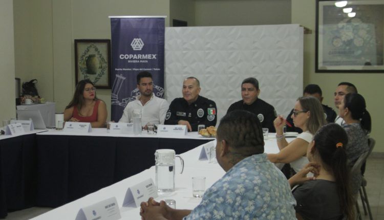 Playa del Carmen, 5 de noviembre del 2023 (Macropolis QR).- El gobierno municipal de Solidaridad encabezado por la presidenta Lili Campos, ha renovado la seguridad con una corporación cercana, que escucha y atiende las necesidades de los diversos sectores, en este sentido el secretario de Seguridad Pública y Tránsito Municipal de Solidaridad, Raúl Tassinari y mandos de la corporación sostuvieron una reunión con integrantes de la Confederación Patronal de la República Mexicana COPARMEX Riviera Maya, para dar seguimiento al trabajo en conjunto y los acuerdos de colaboración que fortalezcan la seguridad de este sector y la ciudadanía.