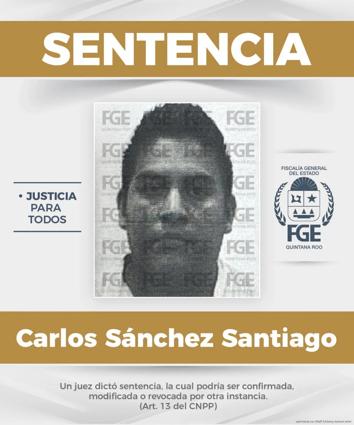 En un segundo proceso, Marco Antonio Carrillo Sabido fue condenado a 35 años de prisión por un delito ocurrido en 2021 en el municipio de Playa del Carmen, en agravio de un menor de cuatro años de edad.