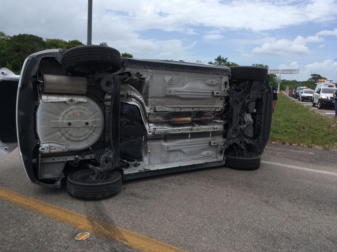 El accidente se registró a la altura de ese libramiento con la carretera federal Reforma Agraria–Puerto Juárez, cuando dicho vehículo provocó, con su omisión, la colisión para terminar volcado sobre la carretera.