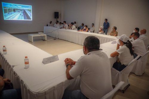 Puerto Morelos, Quintana Roo, 10 de agosto de 2020.- La presidenta municipal Laura Fernández Piña y el representante del Fondo Nacional de Turismo (Fonatur) Raúl Bermúdez Arreola, encabezaron esta tarde una reunión con ciudadanos de Puerto Morelos, con el objetivo de socializar las obras complementarias del Tren Maya que se realizarán en el municipio, para mejorar la movilidad y la infraestructura urbana.