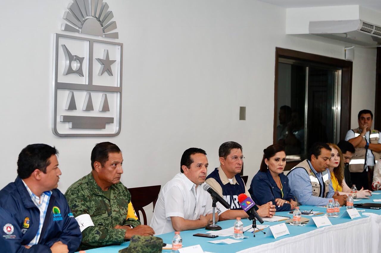 Ante esta situación, la Secretaría de Salud reporta que cuenta con 45 brigadas de atención médica, 10 hospitales en funcionamiento, combustible para plantas de emergencias y plantillas de personal completas; la Oficialía Mayor señala que se está coordinando con la Secretaría de Finanzas y Planeación para las adquisiciones que se requieran; y la Secretaría de Desarrollo Social informa que tiene listas más de mil láminas y 49 comités comunitarios para levantamientos de daños, y dispone de camionetas en Cancún y Chetumal.