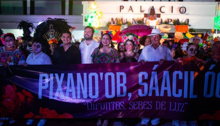 La presidenta municipal Estefanía Mercado encabezó el Desfile de los Pixanes, que partió de la avenida Constituyentes con Quinta Avenida, hasta la Plaza 28 de Julio, donde familias y turistas disfrutaron de antojitos, visitaron altares y conocieron más sobre la cultura e idiosincrasia de México, Quintana Roo y Solidaridad.