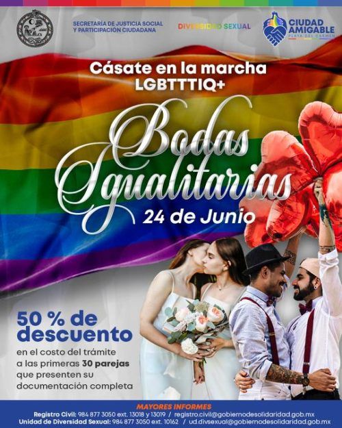 Asimismo, el 23 de junio se llevará a cabo la pinta de la bandera en calle 8 y 10 nte, así como las bodas igualitarias, con el 50% de descuento en el costo del trámite a las primeras 30 parejas que presenten su documentación completa. El 25 de junio será la marcha del orgullo LGBTTTIQ+ a las 16:00 hrs. Saliendo de Polifórum para finalizar con la conmemoración del día del orgullo LGBTTTIQ+ el 28 de junio, entre otras actividades.