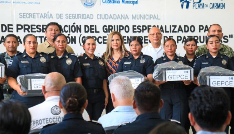 Playa del Carmen. – La presidenta municipal Lili Campos, presentó al Grupo Especializado para el Combate a la Extorsión (GEPCE) de la Secretaría de Seguridad Ciudadana Municipal de Solidaridad, e hizo entrega de uniformes y siete unidades equipadas, como parte de la estrategia de seguridad y construcción de paz, a fin de brindar a los solidarenses una Policía Municipal especializada, digna, moderna, equipada y eficiente.