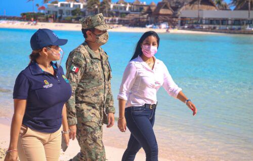 Kerem Pinto Aguilar, directora de la Zona Federal Marítimo Terrestre (Zofemat), explicó que en compañía del contralmirante César Gustavo Ramirez Torralba, coordinador de dicha estrategia en la entidad, y de Mariana García Pérez, coordinadora de vinculación y enlace del gobierno estatal, se realizó el recorrido en Playa Centro y Playa Norte.