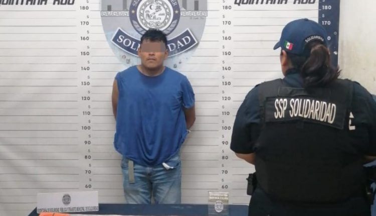 Playa del Carmen.- Policías de la Secretaría de Seguridad Pública y Tránsito Municipal de Solidaridad aseguraron a un sujeto señalado de agredir y lesionar a dos personas con un machete, en la colonia Colosio.