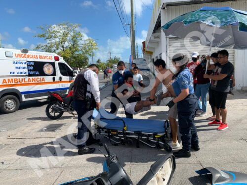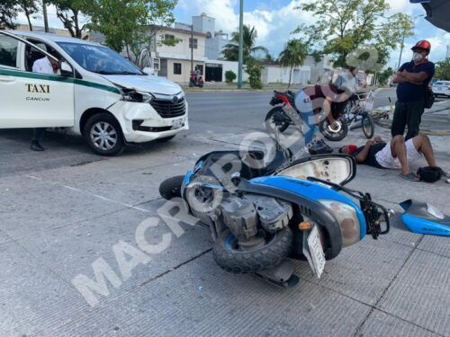 Cancún, Quintana Roo, 5 de febrero 2021.- Un motociclista fue embestido por un taxista en la Región 231, por la avenida Leona Vicario