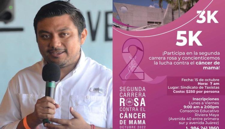 Playa del Carmen.- Como parte de las actividades que se realizan durante octubre, mes en el que se conmemora la sensibilización sobre el cáncer de mama, el sindicato de taxistas Lázaro Cárdenas del Río, que dirige el secretario general, Luis Herrera Quiam, realizará la “2da Carrera Rosa contra el Cáncer de Mama”.