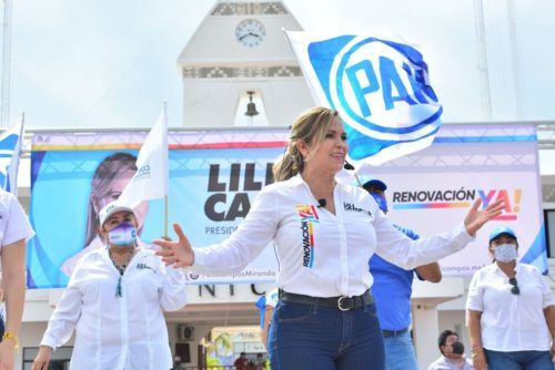 En su cierre de campaña en la plaza 28 de Julio estuvo acompañada de los candidatos a regidores y representantes de los partidos PAN, PRI, PRD y Confianza por Quintana Roo, respetando en todo momento los protocolos de sanidad y prevención contra el COVID-19.