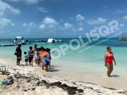 Cancún, a 3 de mayo de 2021.-Un avistamiento de un tiburón se registró la tarde de este lunes en playa Tortugas, lo que dejó perplejos a bañistas locales, quienes disfrutaban del sol, playa y arena.