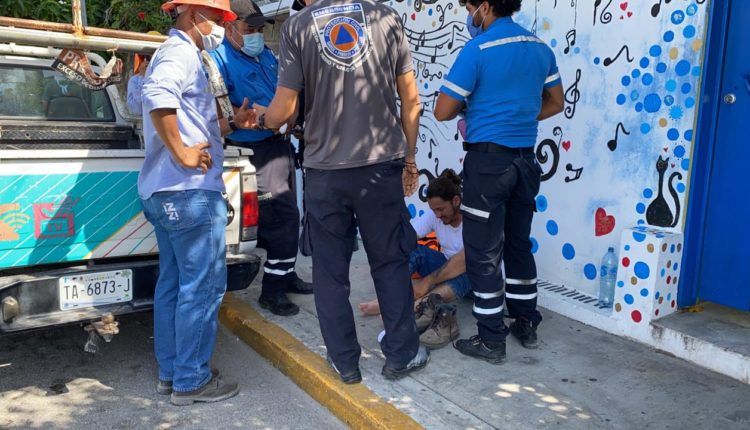 Playa del Carmen, 29 de abril de 2021.- Un trabajador de empresa dedicada a la instalación de cable e internet sufrió descarga eléctrica cuando realizaba reparaciones en las conexiones en la red de la colonia Centro.