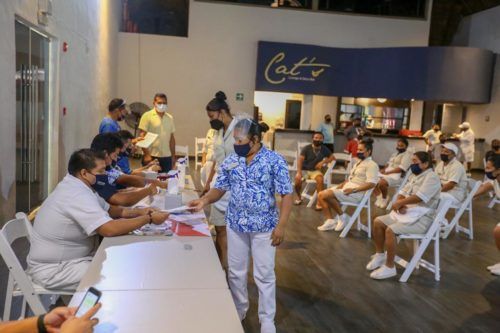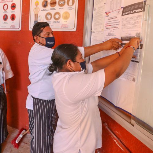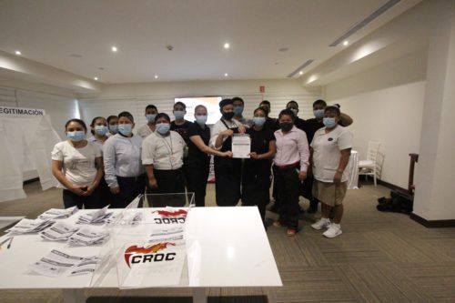 Playa del Carmen, Quintana Roo, 13 de abril de 2021.- Dos centros de hoteles más se sumaron este martes a los centros de hospedaje en los cuales, las y los trabajadores hoteleros gastronómicos han votado a favor de la legitimación de su Contrato Colectivo de Trabajo (CCT).