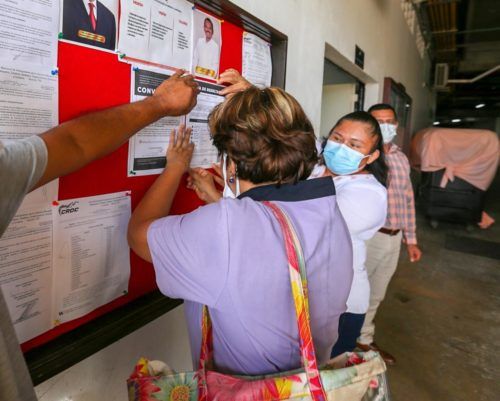 En punto de las 14:00 horas, los trabajadores hoteleros gastronómicos comenzaron a llegar al salón donde se instaló la mesa de registro, las mamparas y urnas donde depositaron cada uno de los votos.