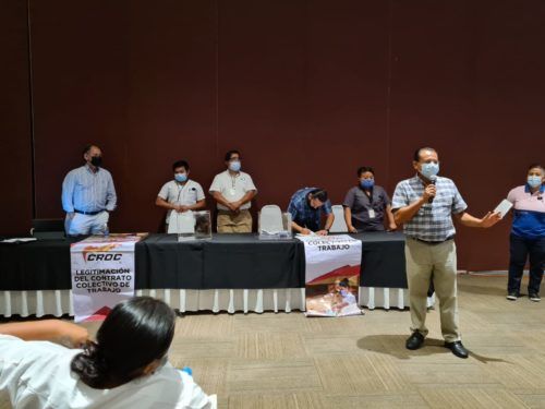 Playa del Carmen, Quintana Roo, 14 de abril de 2021.- Mediante consulta democrática, las y los trabajadores del Hotel The Reef Coco Beach manifestaron su confianza y votaron este miércoles 14 de abril, a favor de la legitimación de su Contrato Colectivo de Trabajo (CCT).