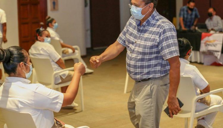 El líder sindical, transmitió a las y los trabajadores del Hotel The Reef Coco Beach, el saludo de parte del líder nacional, diputado federal, Isaías González Cuevas.