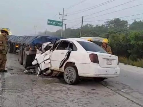 Tulum.- Tres personas que viajaban en un auto Chevrolet blanco perdieron la vida, tras impactarse de lleno contra un tráiler en el tramo Playa del Carmen-Tulum, a la altura del kilómetro 237, a las 6 de la mañana.