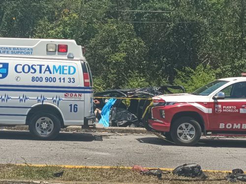 Al lugar arribaron cuerpos de emergencia de Puerto Morelos y paramédicos de la empresa privada Costamed quienes confirmaron que la conductora del vehículo Hyundai color negro ya no contaba con signos vitales, datos preliminares indicaban que la conductora del Hyundai perdió el control al volante y monto el camellón central saliendo proyectado su vehículo contra el carril contrario.