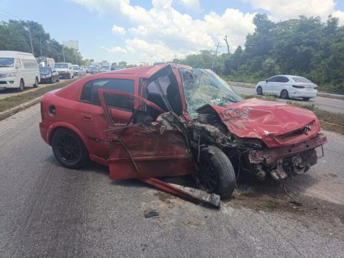 Playa del Carmen.- Un trágico accidente se registró la tarde de este jueves sobre la carretera federal, en su tramo Puerto Morelos a Playa del Carmen, donde una persona perdió la vida y otras tres resultaron heridas.