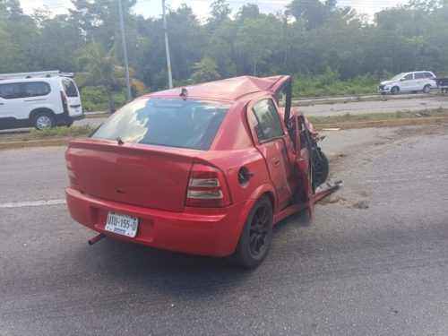 El vehículo al invadir el sentido contrario choco fuertemente contra un vehículo particular color rojo saliendo proyectado también en sentido contrario de la vialidad detrás de este vehículo circulaba una unidad de taxi con número 8137 del sindicato de Cancún que también colisionó contra el vehículo roja y un poste de alumbrado público.