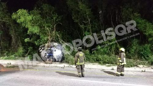 Todo sucedió cerca del kilómetro 20, del bulevar Kukulkán, cuando el conductor de un auto perdió el control al parecer a exceso de velocidad.