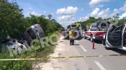 Cancún, a 30 de septiembre de 2021.- Un muerto, una mujer embarazada y dos menores resultaron lesionados, en el accidente de tránsito que ocurrió durante el mediodía de este jueves en la autopista con avenida Huayacán de Cancún.