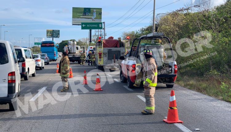 Cancún, a 1 de junio de 2021 .- Una joven fallecida y dos personas lesionadas fue el saldo de un aparatoso accidente ocurrido la tarde de hoy en el tramo carretero Puerto Morelos – Cancún.
