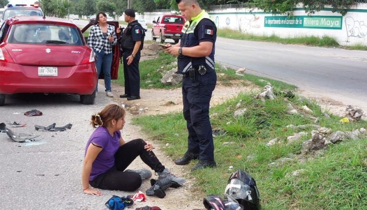 Playa del Carmen. – Un grave accidente de tránsito ocurrido en el fraccionamiento Real Ibiza dejó a una pasajera de motocicleta debatiéndose entre la vida y la muerte, luego de que el vehículo en el que viajaba se impactara contra un automóvil que invadió la vía de manera imprudente.