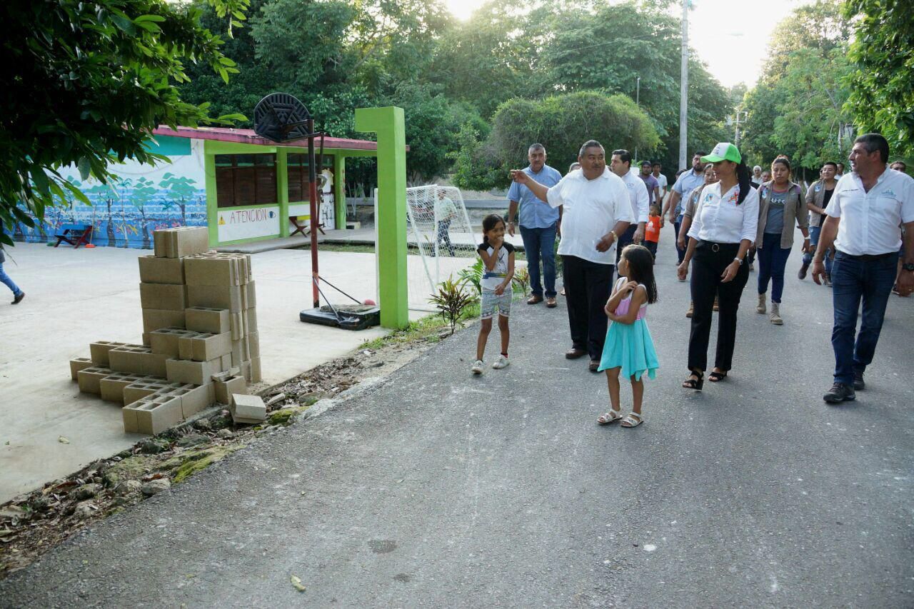 Acompañada por la subdelegada Gelmy Carolina Heredia Cahuich y el comisariado ejidal Francisco González Alcocer, la también presidenta de la Conferencia Nacional de Municipios de México (Conamm) saludó a vecinos y convivió con pequeños que estrenaron una nueva cancha de fútbol, en un ambiente de festividad.